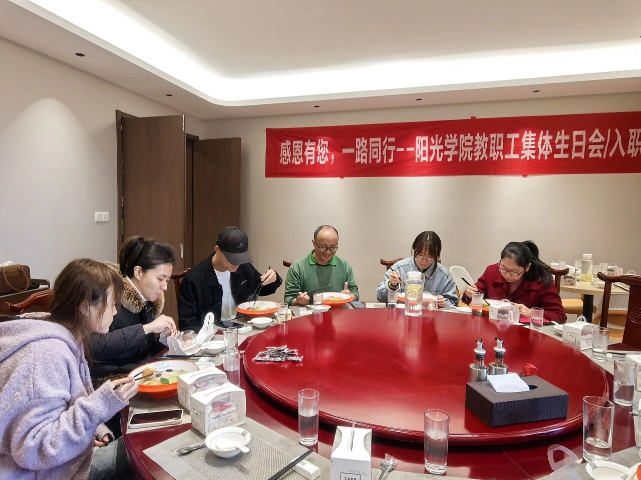 生日会在一片欢声笑语中拉开序幕,掌声与歌声此起彼伏,教职工们畅所欲言,互相分享在阳光学院的成长与收获,新入职教师们聆听着前辈们的分享,感受着阳光学院的热情与温暖。