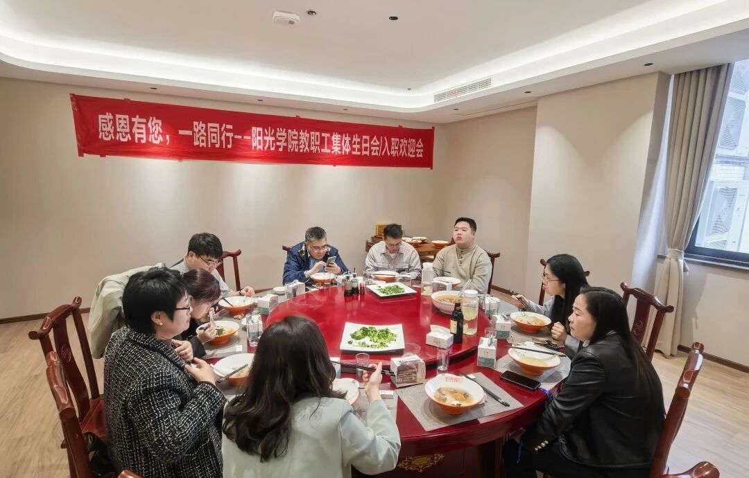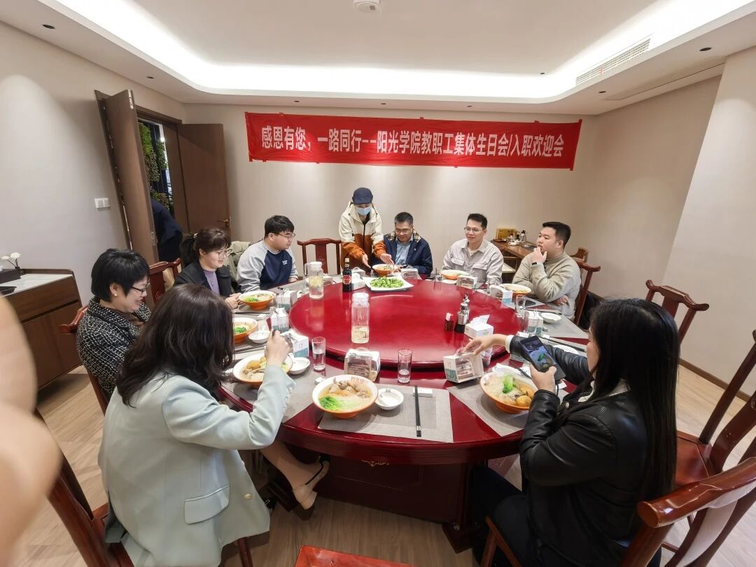 三月的暖阳轻抚校园,一场饱含温情的教职工集体生日会暨入职欢迎会在阳光学院东区餐厅三楼包厢温馨举行。在这个充满希望的季节里,我们以欢笑为伴,以祝福为礼,共同描绘出一幅动人的春日画卷。